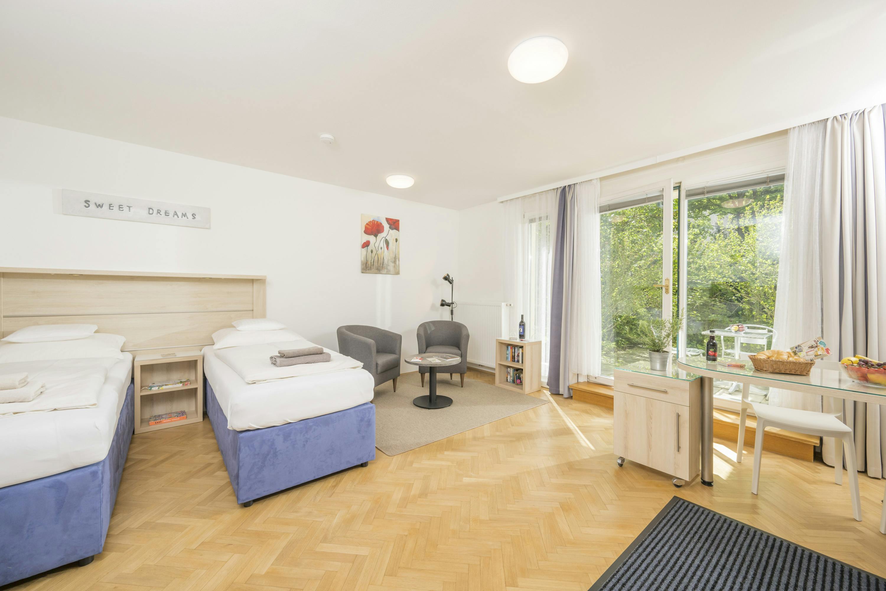 Das voll ausgestattete Apartment befindet sich im Erdgeschoß und hat einen kleinen, privaten Garten dabei. Nur wenige Meter vom Apartment entfernt befinden sich die öffentlichen Verkehrsmittel. In das Stadtzentrum sind es nur 15 Minuten. Rund um die Wohnung gibt es zahlreiche Einkaufsmöglichkeiten und Restaurants. I am very much looking forward to receiving your questions if you need further details about your stay in this apartment. Please be aware that HousingAnywhere is an online booking platform. Therefore exchanging contact details and offering viewings is not possible. If you would like to reserve this accommodation, send me a booking request or a message and please mention your age and occupation. I look forward to meeting you...
