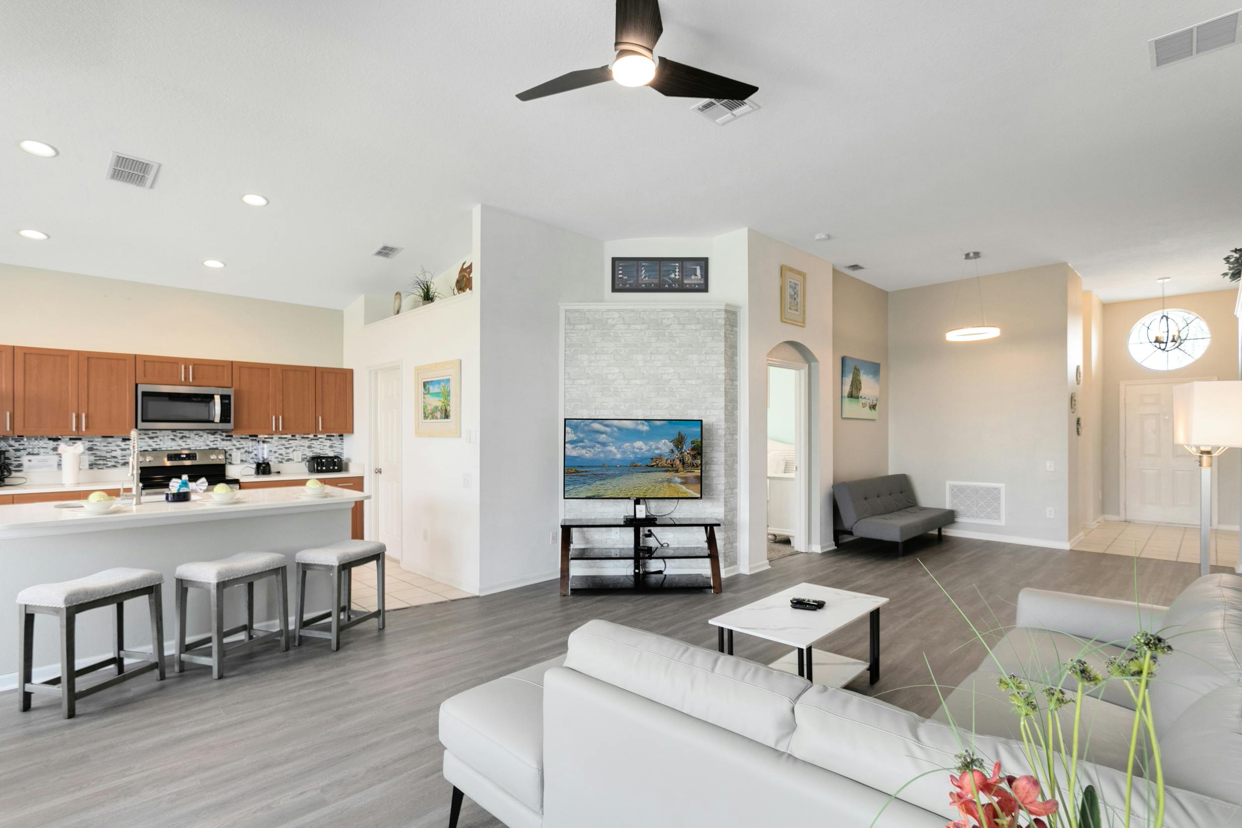 Our home has a private pool, fully screened, just for you to enjoy - plus the home is spacious, fully equipped, for all group members to relax, enjoy family time, or perhaps are “working from home” and can utilize the high speed wifi. We hope you feel comfortable in using our space to relax and get much needed vacation time. Vacation in style with this excellent vacation home in the highly sought after resort of Windsor Palms. Relax in comfort with your family, within this beautiful, private residence. A 4 bedroom home with 3 full bathrooms is very nicely furnished with your comfort in mind. It sleeps 8 people comfortably. The home boasts a colorful appearance, which many guests have found to be very appealing. The modern look is quite unique for a vacation home, and you certainly know you are on vacation when you stay here. Both children's rooms were just recently redone, and new top of the line mattresses and bedding were just put in throughout the house. There are 4 bedrooms in the property, consisting of Two Master, Both rooms has a King size bed and full en-suite facilities and two twin rooms, each themed for children. Other features include a spacious fully equipped kitchen with new kitchen table, large living room, a laundry room with full size washer and dryer, and a game room featuring a ping pong. The kitchen is fully equipped as you would expect of a home of this standard, with a dishwasher, microwave, full refrigerator, stove, coffee maker, blender, toaster, and waste disposal. All linens and towels are supplied for your stay too, with all kitchen utensils and crockery provided as well. There is also a hair dryer in this home, iron, ironing board, high chair, and a pack-n-play for use as well. Sliding patio doors from the family room open onto a covered patio, which features a beautiful screened in swimming pool and a host of furniture. For families, it is worth noting too that this pool area has a child safety net installed for added security. Another popular feature of this home is the proximity it enjoys to all that Windsor Palms has to offer. It is less than a 3 minute walk to the main clubhouse and pool and very close to main entry gate to the resort. All that it offers for the whole family, coupled with the proximity it enjoys to all the local facilities and attractions, and the superb amenities within the Windsor Palms Resort, certainly has a lot to offer our guests and comes very highly recommended. *Please remember that our home is non-smoking, and we have a strict no-pets policy as well. Please note that the Community allows only 4 cars per property. Important notice for Garage: Motor vehicles / trailers / heavy objects are prohibited in this garage. The garage floor in this property has been painted and sealed . It’s sole purpose is for guests to use it for a games room only. The floor is not strong enough to take the weight of any type of motor vehicle / trailer or heavy objects. No commercial vechicles, trailers, boats, etc are not allowed in the community. See below what's not allowed in the community. Commercial Vehicles: 1. Definition of a commercial vehicle is any combination of three (3) criteria listed below: 2. Vehicle has a curb vehicle weight over 5,800 lbs or 6,800 lbs gross weight 3. Vehicle has additional equipment installed to allow: 4. Plowing 5. Lift other vehicles 6. Lift gate 7. Mechanical arms that enable lifting materials, personnel service buckets etc. 8. Tow hitches, bars or arms 9. Vehicle has commercial tags 10. Vehicle owned by a company 11. Vehicle has lettering, magnetic sign, decal or a wrap advertising a service or retail product with or without contact information 12. Vehicle has ladder racks 13. Vehicle has material transport racks/boxes 14. Vehicle seats over 8 people 15. Vehicle is registered or tagged as a livery or limousine 16. Vehicle has dual axles 17. Vehicle has a mount in bed for “fifth wheel” trailer towing b. Recreational Vehicles (RV or Motor Home) – All types towed or self-powered i. Defined as both motorized and non-motorized vehicles that combine transportation and temporary living (hidden) for travel, recreation or camping. c. Trailers for: Cars, Boats, recreational vehicles, motorcycles, debris removal, utility use etc. d. The following other types of vehicles may not be operated within community: i. All-terrain Vehicles (ATV) – any Non-Over Road Vehicle ii. Mini-bikes iii. Vehicles not registered or insured to operate on public roads e. The exceptions to non-over road vehicles are only to be used by the community vendors and management in the performance of maintenance and the execution of community related business. Windsor Palms Resort: Windsor Palms is a very popular resort, and is extremely well maintained. A gated community, manned 24 hours a day, Windsor Palms boasts a whole host of amenities, including a large clubhouse containing a game room, fitness room, free movie theatre, sundry shop, resort level pool with spa and new children's splash pad, and poolside grill and bar. Tennis and Basketball are also available here, and there is a very nice play area for children too. Windsor Palms is located just off Formosa Gardens Boulevard, about 1 mile from the US192, right in the heart of the Disney area. Walt Disney World main gate is just 3.5 miles away, Universal about 14 miles, and Sea World just 10 miles. There are a host of shops and restaurants very close by too, and the famous Florida Mall is just a short drive.. Clearwater Beach is about a 90 minutes away to the West, Cocoa Beach the same distance to the East, and you can get to the wonderful Kennedy Space Center in just over an hour. The resort does have a Shuttle service available to all the areas main attractions and airports, though charges will apply. Details are available at the clubhouse. For golfers there are several courses within easy reach including The Legends course at Orange Lake, just a 5 minute drive from this beautiful resort