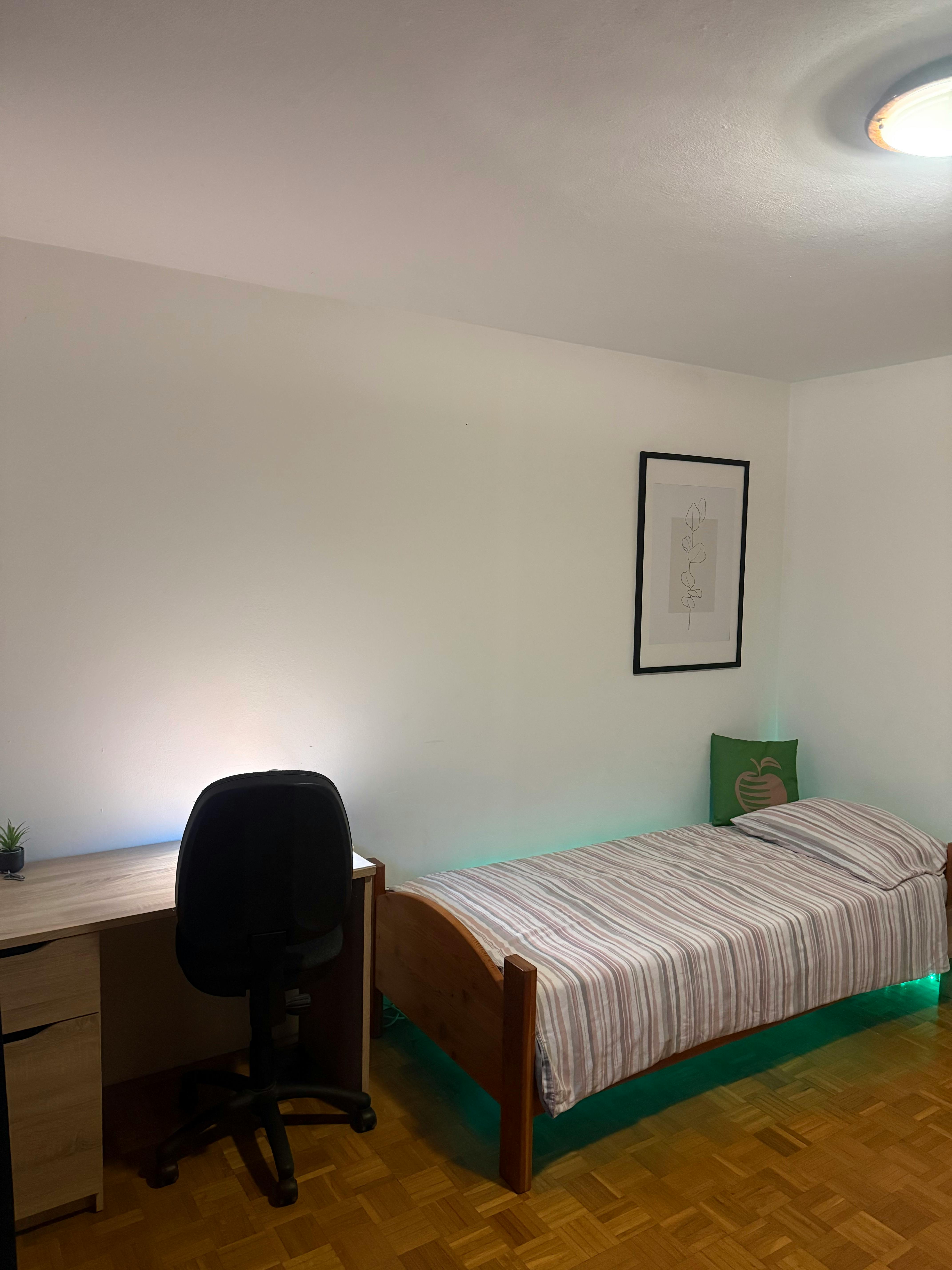 A cozy room is available in our spacious 3-bedroom apartment, boasting two expansive balconies offering picturesque views on both sides. Conveniently situated just 350 meters from the nearest bus station, commuting is a breeze. Moreover, the vibrant city center is a leisurely 20-minute stroll away, ensuring easy access to all the cultural and entertainment offerings Ljubljana has to offer. Join our vibrant community of Erasmus students and immerse yourself in the charm of Slovenian student lif...