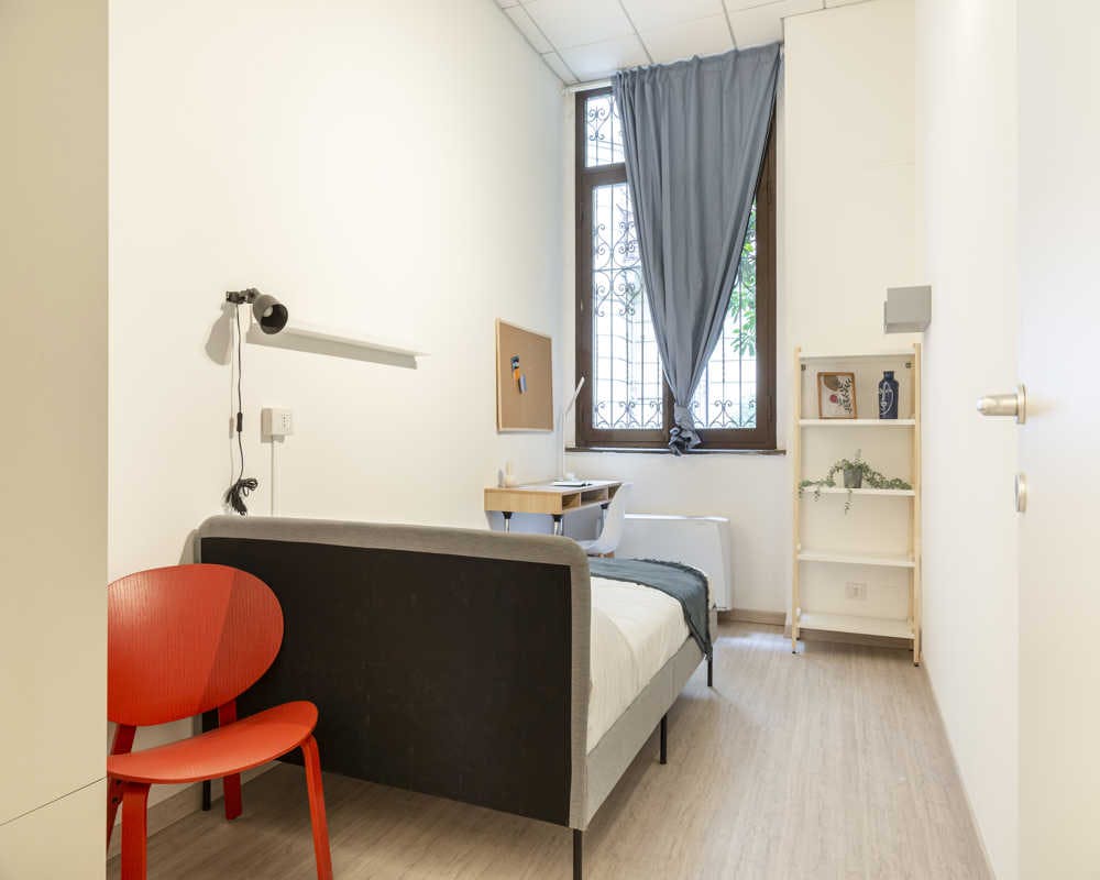 Single room in a shared apartment, composed by 6 bedrooms and 2 bathrooms. Of about 12 sqm with a one and a half bed and a work station. With wifi, air conditioning, bike parking, dishwasher, washing machine. Energy class: D, IPE 273.86 Kwh/Sqm year. Current tenants: 1: 21, Female, Student 3: 24, Female, Worker 4: 22, Female, Student 5: 22, Female, Student 6: 19, Female, Student Please be aware that HousingAnywhere is an online booking platform. Therefore exchanging contact details and offering viewings is not possible. If you would like to reserve this accommodation, send me a booking request or a message and please mention your age and occupation. I look forward to talking to you! CONTRACT Please, note that to all our listings we apply fortnightly contracts. This means that If you check-in during the first half of the month, you will be charged for the full month. If you check-in during the second half of the month, you will only be charged for the second half. The second half of the month starts on the 16th. If you check-out during the first half of the month, you will only pay until the 15th of that month. If you check-out during the second half of the month, you will be charged the full month....