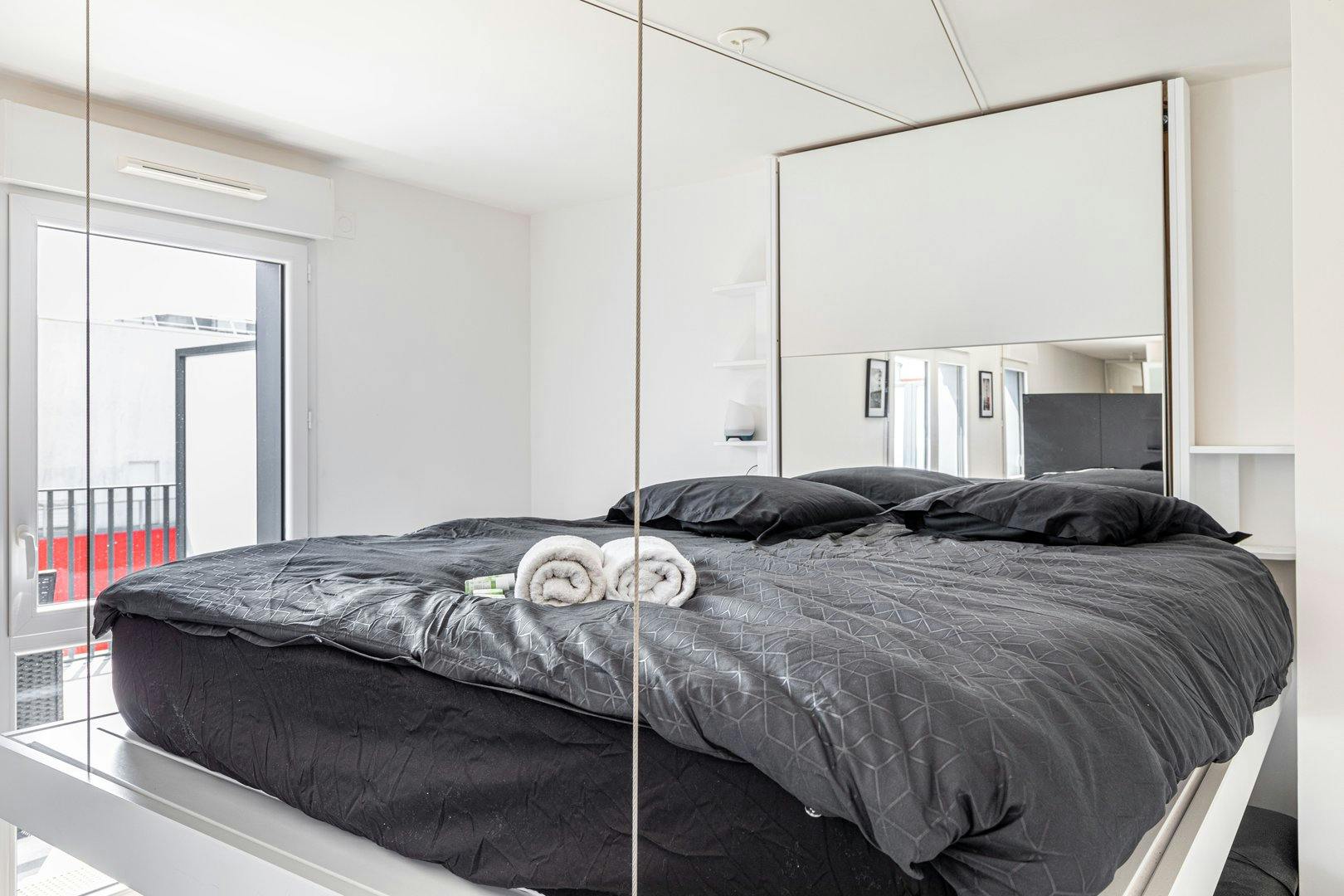 Welcome to my studio! Nestled in the vibrant neighbourhood of Villeneuve-la-Garenne, our studio offers a comfortable and convenient stay. Its modern design and thoughtful amenities provide a welcoming retreat after a day of exploring the nearby attractions. It is designed with open living, dining, and kitchen areas. The living space features a comfy double bed with complimentary hotel-quality linens for maximum comfort, a large sofa, a flat-screen TV to watch all your favourite shows, and a dining table for four where you can dine with loved ones. You can also access a big balcony with seating areas to lounge and enjoy the stunning views. The kitchen has essential cookware and cutleries for delicious meals, including an oven and a microwave. The bathroom contains all the essentials for your convenience, including clean towels and complimentary toiletries. The studio is always professionally cleaned for your comfort. Public parking is open between 8h30 AM and 11 PM. (In the commercial direction crossroads opposite 10 meters 30 meters). Enjoy your stay...