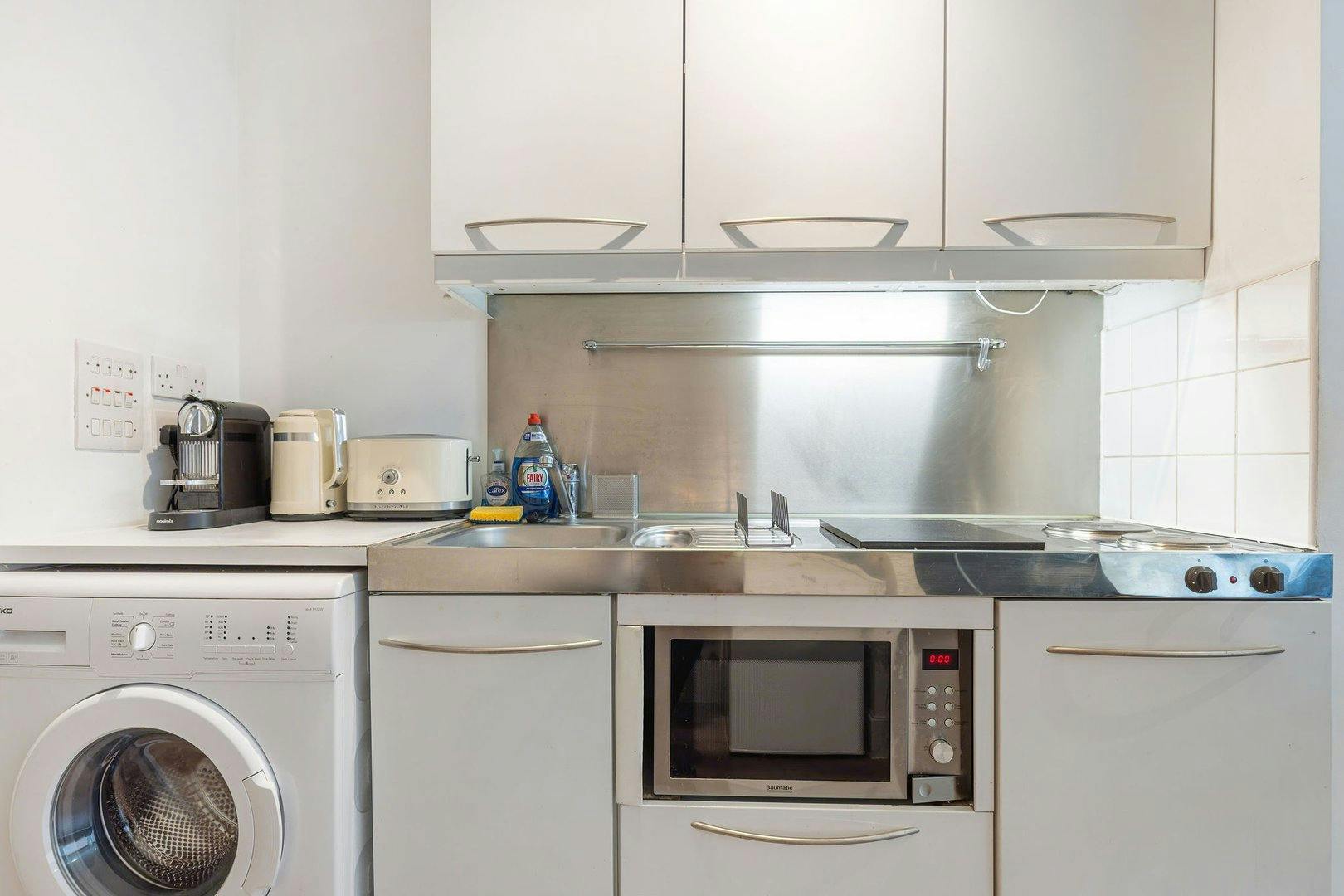 Welcome! This lovely 38m2 studio is located on the 2nd floor, accessible by lift. Designed with an open-plan living room/bedroom, the studio is furnished with a sitting area, a TV to watch all your favourite shows and a comfortable double bed with hotel-quality linens to ensure a good night's sleep. The kitchen includes appliances as well as essential cookware and crockery that will fulfil any of your culinary requirements. There is a washer available for your laundry needs. The bathroom has all the amenities you will need to freshen up, including fresh towels and toiletries for your convenience. The studio is always professionally cleaned for your comfort. Enjoy your stay...