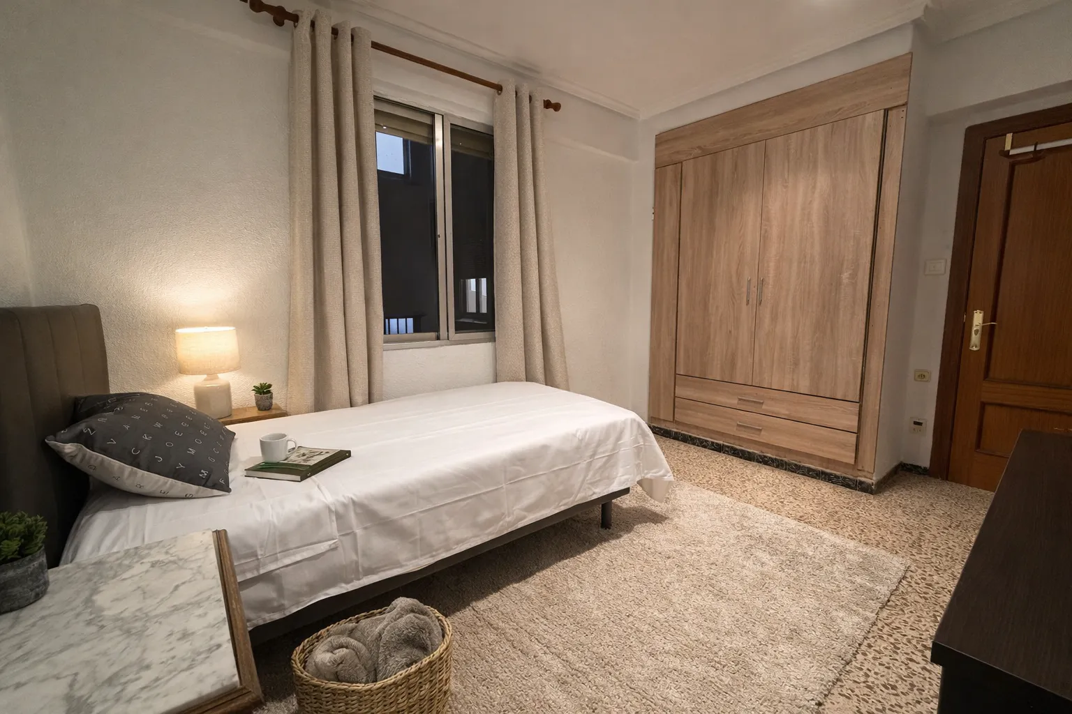 Rooms for rent in a calm international flat in Valencia Located on Calle Pintor Jover, just 5 minutes’ walk from the new Roig Arena and very well connected by bus and metro. All bills included: electricity, water, high-speed internet, communal services and regular cleaning of shared areas. Conditions: • One-month deposit + current month’s rent • Single occupancy only (no couples) • 90 cm single bed in every room Available rooms: Bright room with natural light, desk & TV – €435/month Airy single room with large exterior window, desk and TV. Perfect for those who want plenty of daylight and a proper workspace. Cosy small room with extra-large wardrobe – €425/month Warm and practical compact room with a very spacious wardrobe and nice wall art. Ideal for someone looking for a tidy, intimate space. Medium room with fitted wardrobe, desk & carpet – €445/month Well-sized, functional room with fitted wardrobe, full desk with chair and soft carpet. Great for a quiet working environment. All rooms are ready to move in and the flat is clean, comfortable and well-maintained. We are looking for respectful, tidy flatmates (ideally professionals or mature students) for a calm and friendly international atmosphere. Viewings available both in person and virtually. Contact me on (hidden): (hidden) Drop me a message with a bit about yourself and your move-in date. Happy to answer any questions...