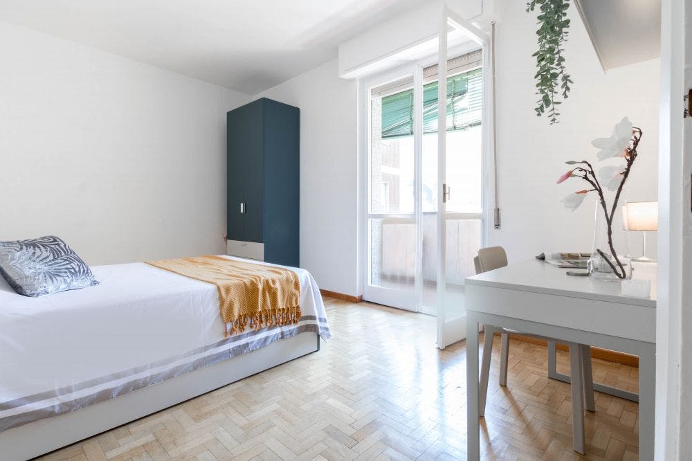 Spacious and luminous two-bedroom apartment in Via Maniago, a few minutes from "Città Studi" (the university area), Politecnico and UNIMI. This flat is located in one of Milan’s most international neighborhoods, Lambrate, with easy access to Politecnico di Milano, the University of Milan, and the entire Città Studi university area. Recently renovated, the flat is designed to meet all the needs of students or young professionals. Large windows and balconies fill the rooms and common areas with natural light. The apartment features a kitchen, two single bedrooms, and a bathroom with shower and washing machine. The recent renovation ensures a cozy and thoughtfully detailed living space. The flat is located in the heart of the Lambrate - Città Studi district, where you will find: - Politecnico di Milano: 15 minutes by walk; - UNIMI 20 minutes by walk; - BESTA and Istituto dei Tumori 20 minutes far; The area has everything you need for a comfortable stay: supermarkets, services and any kind of shops. Strategic location that will let you enjoy all the great activities that Milan offers. You will be able to explore the city by walk or using the several means of transportation in the area: - Lambrate FS Station 7 minutes by walk; - Lambrate Green Line Metro 7 minutes by walk; Trams and buses are available at Milano Lambrate station. Milan, the Italian capital of fashion, is the new trend destination in Europe due to its historical heritage, gastronomy and design. Elegant palaces, huge tree-lined avenues and avant-garde boutiques frame the scene. You will find countless restaurants and clubs that livens up the city all year round, as well as priceless historical monuments such as the Duomo, Castello Sforzesco, Quadrilatero della Moda, Galleria Vittorio Emanuele, Palazzo Reale and Cenacolo Vinciano. - Don't smoke - Pets are not allowed - Parties are forbidden - Take out the trash daily - Short-term visits are allowed Spacious and bright single room in Via Maniago This single room features a French bed and is spacious and well-equipped for university students or young professionals. It includes a desk, a bedside table with a lamp, a wardrobe with drawers, and a large balcony. ALL BILLS ARE INCLUDED up to 50 euro of expenses per month (if you will do a normal amount of usage, you would not have to pay for it!). After the payment of the first month rent on HousingAnywhere, to finalize the reservation, the tenant has to pay the deposit and the admin fee. The admin fee covers: -weekly cleaning service of the common areas for the entire duration of the contract; - contract registration fees (registration tax, stamps and registration fee); -maintenance. Contracts can’t end on 30 of April - 31 of May - 30 of June. Cancelling contract in advance is possible with three months notice period only after three months contract. If you cancel the contract before the natural ending you have to pay 200€ penalty...