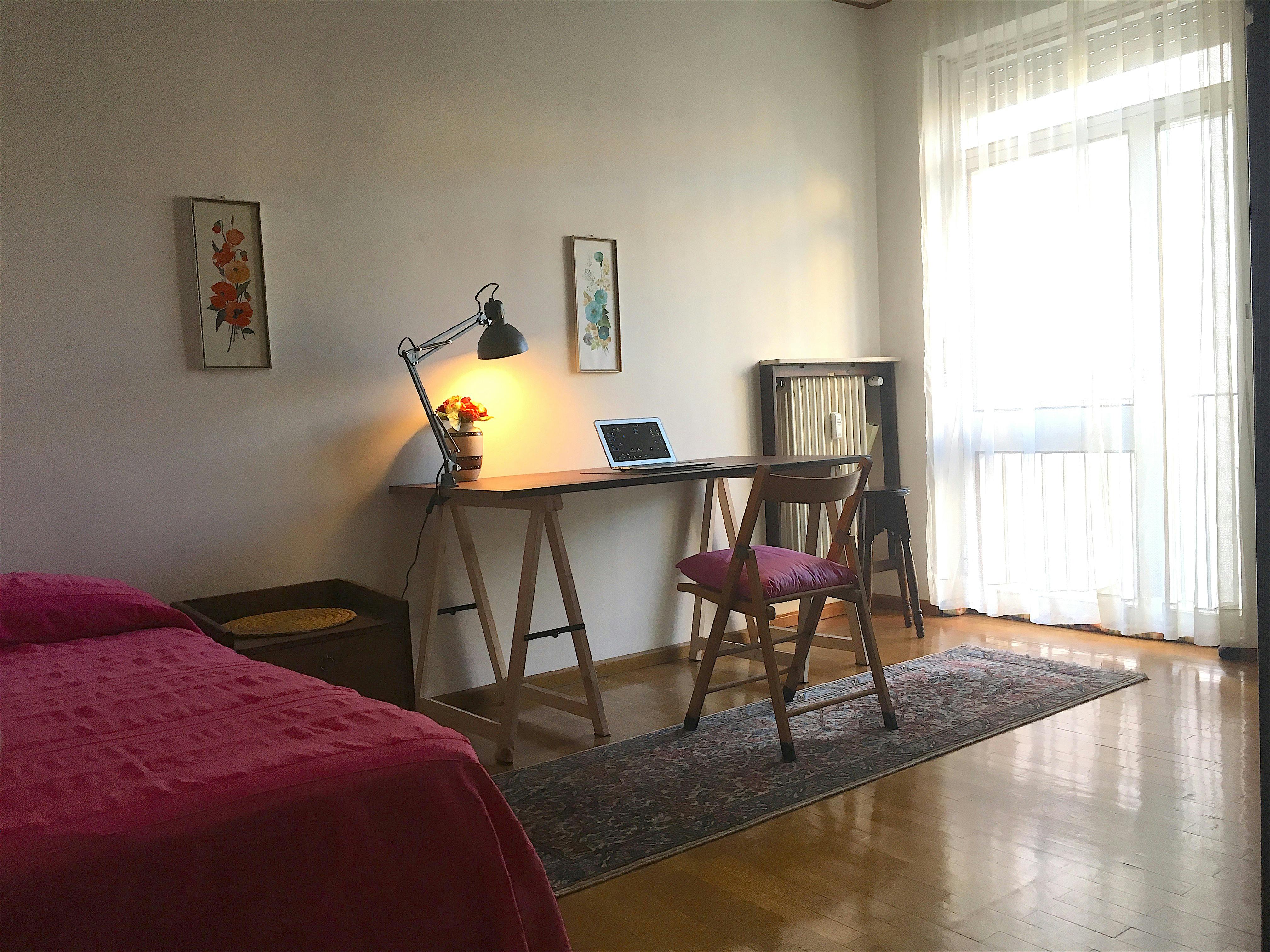 Rooms Bolzano The Mirrors Room Available from january 15, 2025 A separately rented room in a fully equipped apartment in front of the University and beside Museion, in Bolzano ancient town-centre. Quiet and bright room, wooden parquet floor, wardrobe and closet, table, 2 chairs, bed equipped with bed linen pillow and blankets, central and table lights. Second floor, elevator, kitchen dining-room [oven, 4 cooking plates, frigidaire, various electro-appliances, dishes, pots and cutlery], bathroom with window, 3 private rooms provided with bedsheets and towels, balcony, cellar, washing-machine, internet wi-fi. Monthly € 680 all expenses included Expenses include internet wifi, electricity and gas, heating, warm and cold water, municipal waste tax. Cost estimate based on average consumption; balance required in case of extra consumptions. Fortnightly cleanings of shared spaces (kitchen, bathroom, corridor, balcony) also included. 1.600 € down-deposit required Italian and german also spoke...