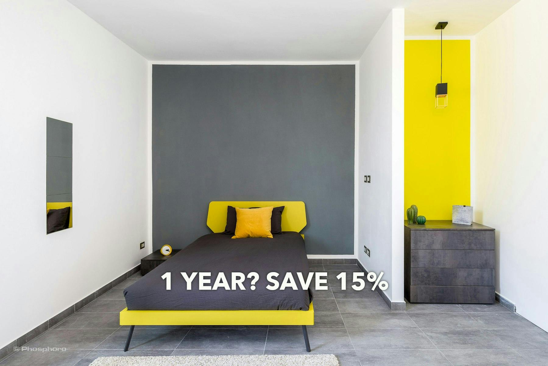 More than a room, a studio flat At our company, we love long-term stays! Enjoy significant discounts when you stay with us for 12 months. If you need to stay for less than 12 months but find someone to take over for the remaining period, both of you will benefit from our substantial discounts. Ask for a quote today and start saving! Room: Discover this spacious 20 m2 single room, furnished in an industrial style that uses strong and bold tones, perfect for those looking for a space with character. The queen-size bed, equipped with a comfortable mattress, guarantees optimal rest. The large 150 cm desk, combined with the Pedrali Babila chair, creates an ideal work or study area, while the three-door wardrobe offers plenty of space to organize your clothes. A unique mix of functionality and aesthetics that makes this room truly special. Apartment: Completely modernized and refurnished 85m2 apartment with three single rooms. Located in a very well served area, it is also ideal for those who want to be well connected to the center of Milan; the very nice apartment with attention to the smallest details, is located on the second floor of an elegant building with concierge, 5 minutes from the M2 Verde Cimiano and consists of: designer kitchen equipped with all comforts: American fridge, hob, oven and dishwasher single room with balcony S1: queen-size bed with orthopedic mattress, bedside table with drawer, 3-door wardrobe, chest of drawers, desk with chair, shelf, table lamp, hanging lamp. single room S2 : queen-size bed with orthopedic mattress, 2 bedside tables with 2 drawers, wardrobe with 2 sliding doors with internal chest of drawers, desk with chair, table lamp, hanging lamp single room S3 : single bed with orthopedic mattress and structure with 3 pull-out drawers, open bookcase, 1-door wardrobe, 2-door wardrobe, desk with chair, desk lamp very nice bathroom with shower and tub We're a bit old-fashioned and still prefer deposits like the good old days, so we require the deposit payment to be made to the property manager's bank account immediately after completing the reservation process on HousingAnywhere...
