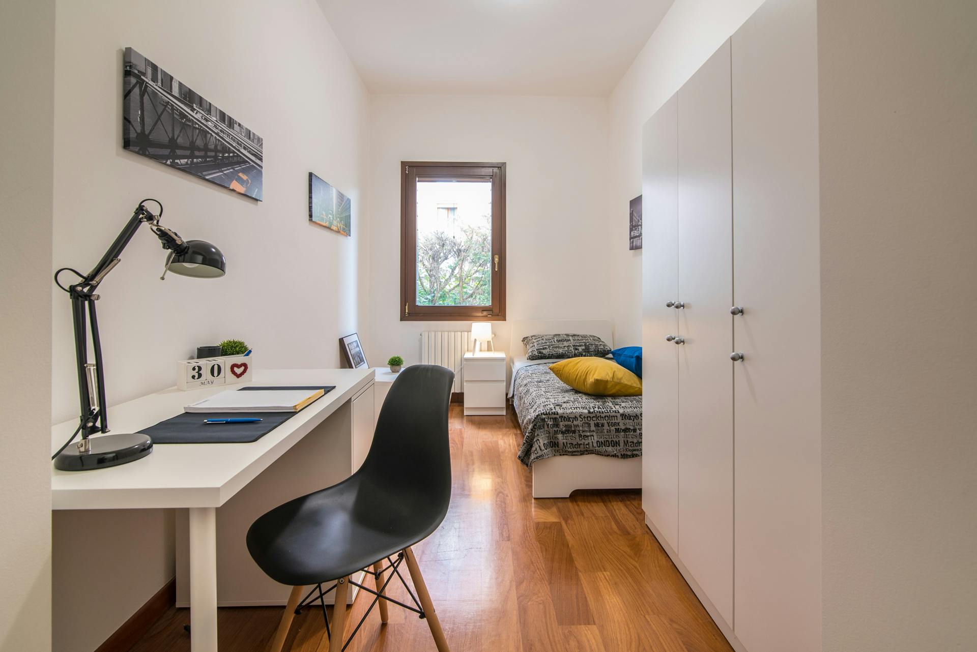The newly renovated apartment has very large spaces and is located in an independent house divided onto two floors: on the ground floor there is a huge fully-equipped kitchen, 1 shared bathroom and 3 single rooms (one of which has a PRIVATE BATHROOM). On the 1st floor, there are 4 single rooms (one of which has a WITH PRIVATE BATHROOM) and 1 shared bathroom. The apartment also has large terraces and an internal courtyard, very convenient for spending some time outdoors. The house is in a beautiful residential neighbourhood, a 15-minute walk from Piazza Duomo and the other squares of Padua. The humanities faculties (History, Literature, Languages, etc.) are less than 10 minutes by bike from the apartment. The area also has all essential services at hand: the Eurospar supermarket is a 5-minute walk from the apartment, but in Via Palestro you will also find pharmacies, bicycle shops, bars and many other services. In addition, in the nearby there are many trendy pubs where young people and students go. The area is also very convenient for getting around by public transport: Line 9 passes through the street and it allows you to reach every area of Padua in a few minutes. THE PRICE OF SINGLE ROOM "A" WITH SINGLE BED IS 400€ Besides, to the price of the room, 80 € for our ALL-INCLUSIVE FORMULA will be added. This includes: -All the bills (Electricity, Water, Gas, Heating) -All the condominium fees - Optical Fiber Internet Wi-FI - Assistance service in case of Maintenance Works - An Apartment Manager at your disposal to help you in everything you need You will also have a (hidden) group of the apartment in case of need or emergency and to communicate with your Apartment Manager. We will intervene with our technicians, so you will not have to worry about anything 😊 The rental contracts are individual. If you want to receive further info or if you have any questions, don’t hesitate to contact us 😊 Once your booking is confirmed, you will receive the rental contract. To finalize your reservation, you must: ✔ Pay 2 months’ deposit within 48 hours of receiving the contract ✔ Pay the administration fee within 48 hours of receiving the contract ✔ Submit all required documents for the contract registration ⚠️ If you do not provide the required payments and documents within 7 days of booking, your reservation will be automatically cancelled. 🔔 Please note: Rent payments are made bimonthly or quarterly...