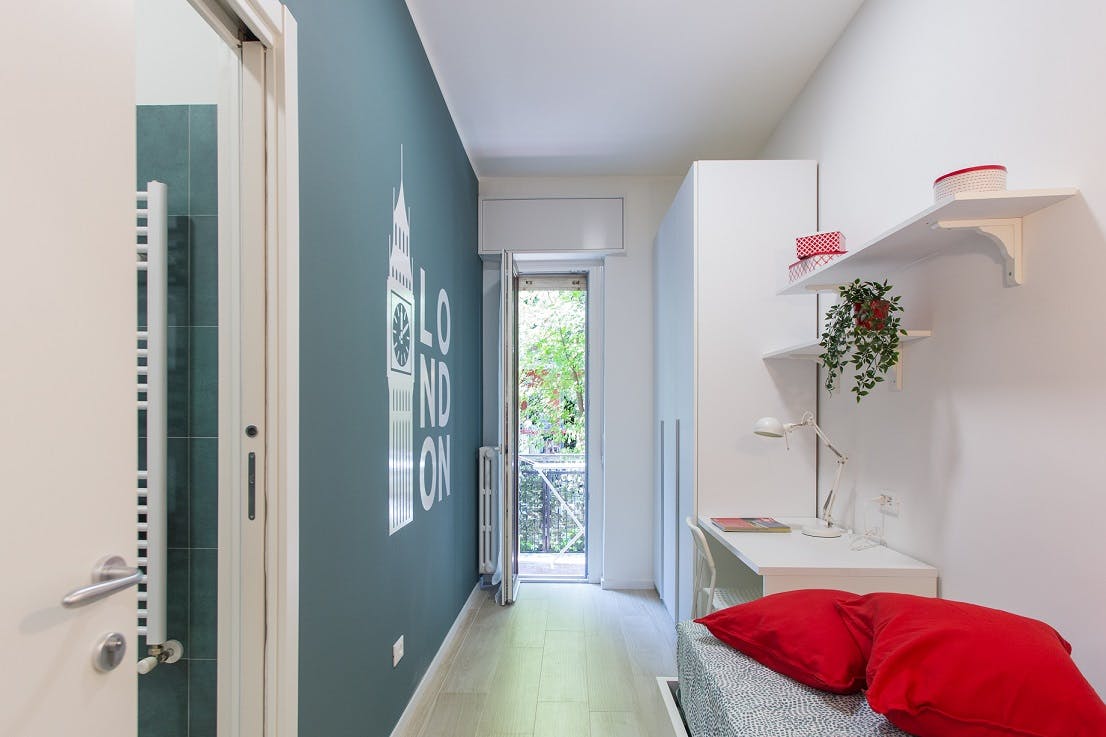 Room for rent in an apartment with 3 bedrooms in Milan Rooms and beds for rent in a furnished apartment with 3 bedrooms on Via Mincio. The property is on the 1st floor of a building with an elevator. The property includes a balcony and air conditioning. Details: - Property type: apartment - Floor: 1 - Elevator: yes - Number of bathrooms: 2 (1 shared and 1 private for Bedroom 3) - Maximum occupancy: 4 people - Wifi installed: yes RENTAL CONDITION: - Utilities are excluded, in the amount specified below are included: wi-fi, water, electricity, heating and condominium fee. - Deposit: it will be given back at the end of the stay if there are no damages to the room or the apartment. - Check-in and check-out hours from Monday to Friday from 9 to 17:30. If you want to check in outside working hours or during the weekend, there will be an extra cost (check it in the breakdown below). - The fee below mentioned as "other" refers to the cost for the registration of the contract. - Check-in will be done at the office. If you prefer to do it at the apartment, this should be arranged with us beforehand and has an extra cost. You can see the cost stated below as "Other optional cost" - In the case of bookings shorter than 12 months, the monthly rent shown increases by an extra 40€, in the case of bookings shorter than 6 months, the monthly rent shown increases by 80€. Please be aware that HousingAnywhere is an online booking platform. Therefore exchanging contact details and offering viewings is not possible. If you would like to reserve this accommodation, send me a booking request or a message and please mention your age and occupation. I look forward to meeting you...