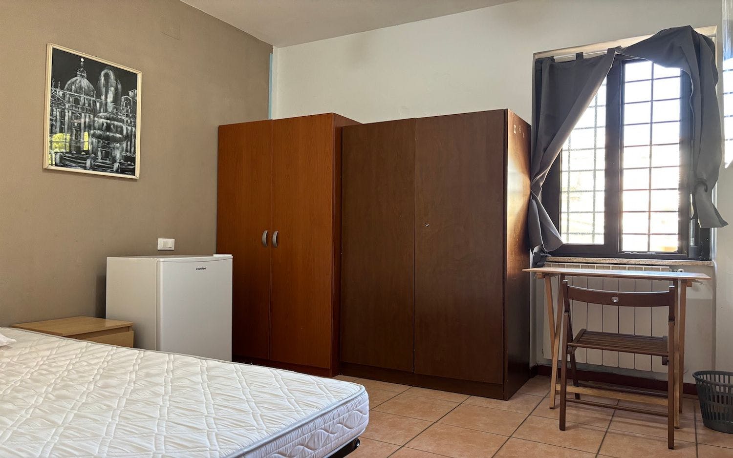 Single room with private fridge and private bathroom for rent in a residence for (hidden)/young workers in Portuense area, near the American University of Rome and convenient for Roma Tre University. The residence has 30 bedrooms, a kitchen, a living room, a laundry room and 17 bathrooms. The one-time administration fee (different from the booking fee of the platform) is NOT REFUNDABLE in case of cancellation by the tenant. The fee covers different activities done before your arrival, at your arrival, and during your stay. These activities are: - Maintenance before arrival - Drafting the contract - Assisted check in - Keys at hand at check in - Delivery of a ready-to-use room - Monthly apartment cleaning A payment request will be sent to you after the booking is confirmed. IMPORTANT It's not possible to check in/out outside of the schedule below or during a holiday (example: Christmas, New Year, Ester, Sundays, etc.). No exceptions will be made. CHECK IN / OUT TIME: Monday – Friday: 9.30 - 18.00 (by appointment) Saturday: 10.30 - 12.00 with an extra cost of 50 euros (by appointment and based on our availability). Please be aware that HousingAnywhere is an online booking platform. Therefore exchanging contact details and offering viewings is not possible. If you would like to reserve this accommodation, send me a booking request or a message and please mention your age and occupation. I look forward to meeting you!...