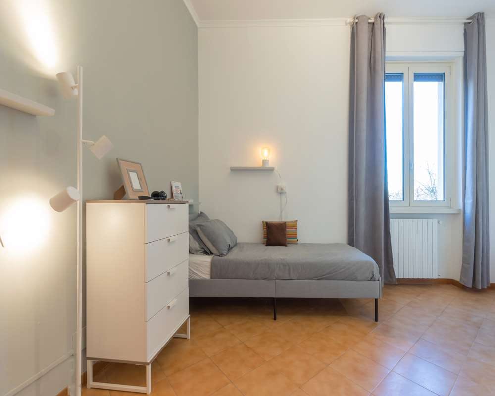 Single room in a shared apartment, composed by 5 bedrooms and 2 bathrooms. Of about 30 sqm with a single bed and a work station. With wifi, dishwasher, washing machine. Energy class: G, IPE 687.85 Kwh/Sqm year. Current tenants: 1: 21, Male, Worker 2: 31, Female, Student 4: 27, Female, Student 5: 23, Female, Student Please be aware that HousingAnywhere is an online booking platform. Therefore exchanging contact details and offering viewings is not possible. If you would like to reserve this accommodation, send me a booking request or a message and please mention your age and occupation. I look forward to talking to you! CONTRACT Please, note that to all our listings we apply fortnightly contracts. This means that If you check-in during the first half of the month, you will be charged for the full month. If you check-in during the second half of the month, you will only be charged for the second half. The second half of the month starts on the 16th. If you check-out during the first half of the month, you will only pay until the 15th of that month. If you check-out during the second half of the month, you will be charged the full month....