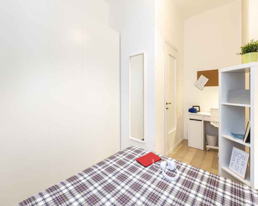 Single room in a shared apartment, composed by 5 bedrooms and 2 bathrooms. Of about 13 sqm with a one and a half bed and a work station. With wifi, concierge services, dishwasher, washing machine. Energy class: G, IPE 214.70 Kwh/Sqm year. Current tenants: 1: 24, Male, Student 5: 18, Male, Student Please be aware that HousingAnywhere is an online booking platform. Therefore exchanging contact details and offering viewings is not possible. If you would like to reserve this accommodation, send me a booking request or a message and please mention your age and occupation. I look forward to talking to you! CONTRACT Please, note that to all our listings we apply fortnightly contracts. This means that If you check-in during the first half of the month, you will be charged for the full month. If you check-in during the second half of the month, you will only be charged for the second half. The second half of the month starts on the 16th. If you check-out during the first half of the month, you will only pay until the 15th of that month. If you check-out during the second half of the month, you will be charged the full month....