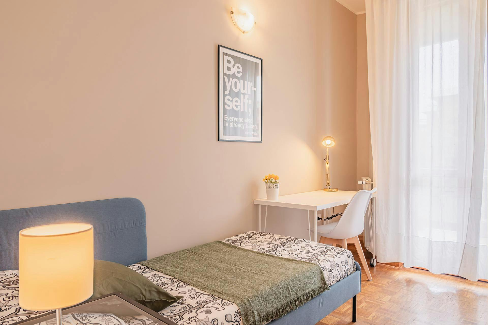 DISCOUNT Please note that the room has a discounted price valid until 2025-08-31, afterwards the rent will be 653 euros. The apartment of via Pollak 10 is a multi-room apartment shared for university students, interns or young workers that consists of a large entrance hall, 5 private bedrooms, kitchen and 2 bathrooms. The flat is almost 120 squared meters and located at the third floor of a residential building. Via Pollak is close to via Novara, San Siro district, which is connected through via rembrandt to the city center of Milan (De Angeli district). The street is very well served with pubblic transportation: a few hundred meters far from bus station of the lines 64, 78, 80, 423 and less than 1 km far from the metro stations of the Purple line M5 San Siro Stadio and San Siro Ippodromo. The area is served with any kind of services: right next to the building there is Esselunga supermarket, while in via Novara there are shops, bars, restaurants and take-aways. In an apartment located in via Pollak 10, this private room is reserved foruniversity students, interns or young workers. Fully furnished, it is equipped with single bed, bedside table with lamp, wardrobe, bookcase, desk and chair. Kitchen and bathrooms are shared with the other tenants of the apartment. Includes utilities: building expenses, heating, water, electricity, internet, garbage tax, periodical cleaning services of common areas; utilities adjustments excluded. RENTAL CONDITIONS: -BI-WEEKLY CONTRACT: If you move in during the 2nd half of the month, you will only pay half-a-month’s rent for that month. If you move out during the 1st half of the month, you will only pay half-a-month’s rent for that month. I always rent from the first day the room is available. - ALL - INCLUSIVE Monthly rent: water, gas, electricity, wi-fi, condominium fee all included! - DEPOSIT that it will be given back to you at the end of your stay. - CONTRACT REGISTRATION (one time fee): depending on the room you are interested in. Please check the field OTHER to see this fee. - ONE TIME ADMIN FEE: We are a professional property management company and for this reason we also include initial and final cleaning of the room; cleaning of common area of the flat every two weeks; 2 bed-linen; contract activation and termination: professional assistance service and property maintenance during your stay: we will take care of everything! Do you want to finish your contract earlier than agreed? Don’t worry, please inform us and if you find a substitute (of course we can also help you!), you can leave without any type of penalties. Please be aware that HousingAnywhere is an online booking platform. Therefore exchanging contact details and offering viewings is not possible. If you would like to reserve this accommodation, send me a booking request or a message and please mention your age and occupation....