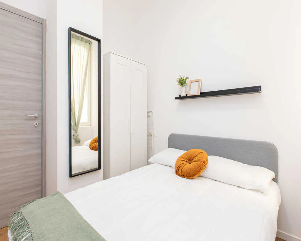 Single room in a shared apartment, composed by 3 bedrooms and 1 bathroom. Of about 9 sqm with a one and a half bed and a work station. With wifi, dishwasher, washing machine. Energy class: C, IPE 141.76 Kwh/Sqm year. Current tenants: 1: 23, Female, Student 3: 21, Female, Student Please be aware that HousingAnywhere is an online booking platform. Therefore exchanging contact details and offering viewings is not possible. If you would like to reserve this accommodation, send me a booking request or a message and please mention your age and occupation. I look forward to talking to you! CONTRACT Please, note that to all our listings we apply fortnightly contracts. This means that If you check-in during the first half of the month, you will be charged for the full month. If you check-in during the second half of the month, you will only be charged for the second half. The second half of the month starts on the 16th. If you check-out during the first half of the month, you will only pay until the 15th of that month. If you check-out during the second half of the month, you will be charged the full month....