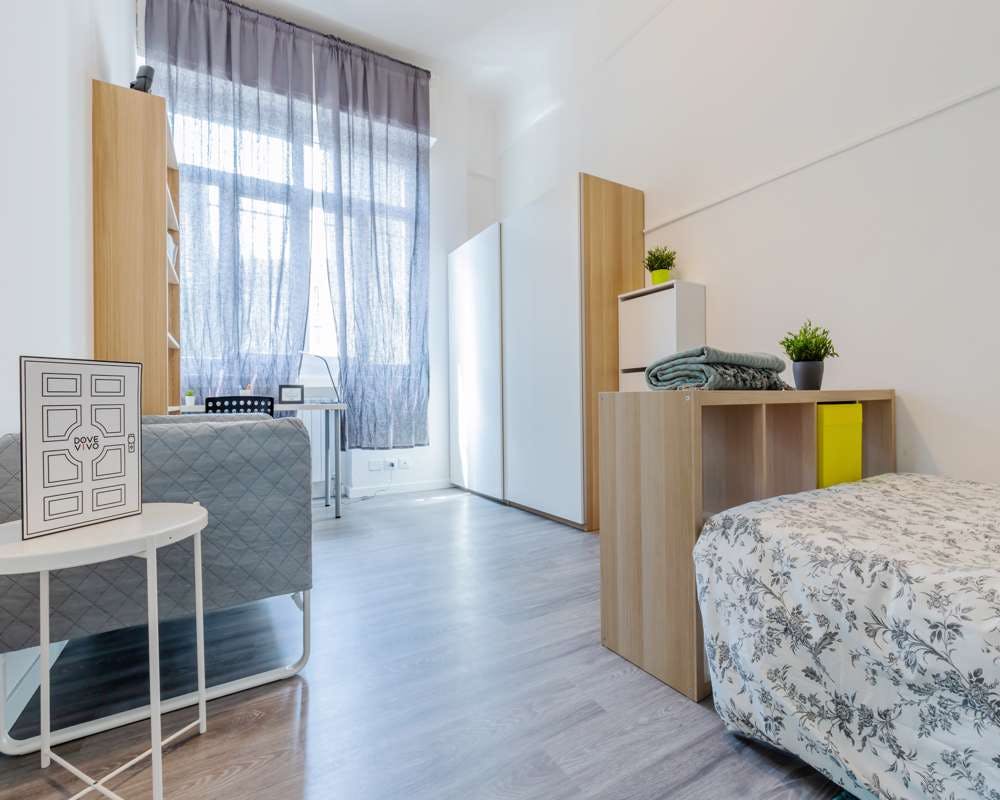 Single room in a shared apartment, composed by 9 bedrooms and 3 bathrooms. Of about 19 sqm with a one and a half bed and a work station. With wifi, dishwasher, washing machine. Energy class: E, IPE 149.99 Kwh/Sqm year. Current tenants: 1: 31, Male, Student 2: 21, Male, Student 3: 22, Male, Student 5: 21, Female, Student 6: 27, Male, Student 7: 22, Female, Student 8: 25, Male, Worker 9: 24, Male, Student Please be aware that HousingAnywhere is an online booking platform. Therefore exchanging contact details and offering viewings is not possible. If you would like to reserve this accommodation, send me a booking request or a message and please mention your age and occupation. I look forward to talking to you! CONTRACT Please, note that to all our listings we apply fortnightly contracts. This means that If you check-in during the first half of the month, you will be charged for the full month. If you check-in during the second half of the month, you will only be charged for the second half. The second half of the month starts on the 16th. If you check-out during the first half of the month, you will only pay until the 15th of that month. If you check-out during the second half of the month, you will be charged the full month....