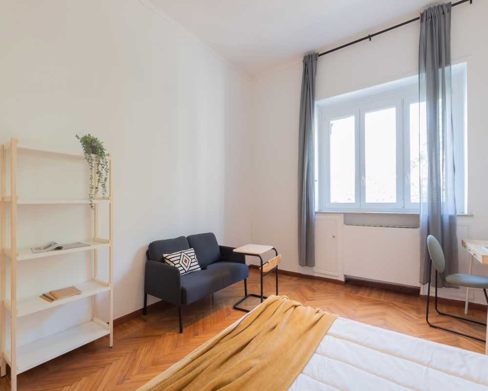 Single room in a shared apartment, composed by 6 bedrooms and 2 bathrooms. Of about 23 sqm with a one and a half bed and a work station. With wifi, bike parking, dishwasher, washing machine. Energy class: E, IPE 182.03 Kwh/Sqm year. Current tenants: 1: 23, Male, Student 2: 23, Female, Worker 3: 26, Male, Student 5: 27, Female, Student Please be aware that HousingAnywhere is an online booking platform. Therefore exchanging contact details and offering viewings is not possible. If you would like to reserve this accommodation, send me a booking request or a message and please mention your age and occupation. I look forward to talking to you! CONTRACT Please, note that to all our listings we apply fortnightly contracts. This means that If you check-in during the first half of the month, you will be charged for the full month. If you check-in during the second half of the month, you will only be charged for the second half. The second half of the month starts on the 16th. If you check-out during the first half of the month, you will only pay until the 15th of that month. If you check-out during the second half of the month, you will be charged the full month....