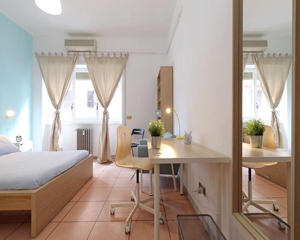 Single room in a shared apartment, composed by 5 bedrooms and 2 bathrooms. Of about 20 sqm with a one and a half bed and a work station. With wifi, bike parking, concierge services, dishwasher, washing machine. Energy class: G, IPE 380.52 Kwh/Sqm year. Current tenants: 1: 20, Female, Student 2: 21, Female, Student 3: 20, Female, Student 5: 18, Female, Student Please be aware that HousingAnywhere is an online booking platform. Therefore exchanging contact details and offering viewings is not possible. If you would like to reserve this accommodation, send me a booking request or a message and please mention your age and occupation. I look forward to talking to you! CONTRACT Please, note that to all our listings we apply fortnightly contracts. This means that If you check-in during the first half of the month, you will be charged for the full month. If you check-in during the second half of the month, you will only be charged for the second half. The second half of the month starts on the 16th. If you check-out during the first half of the month, you will only pay until the 15th of that month. If you check-out during the second half of the month, you will be charged the full month....