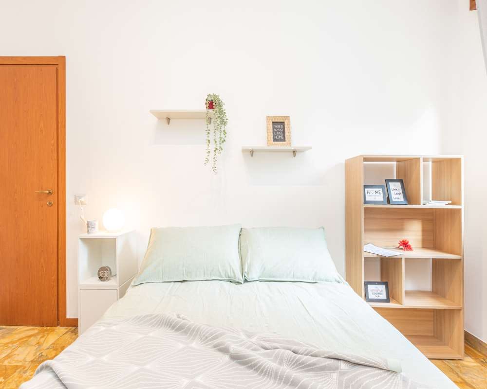 Single room in a shared apartment, composed by 5 bedrooms and 2 bathrooms. Of about 16 sqm with a double bed and a work station. With wifi, concierge services, dishwasher, washing machine. Energy class: E, IPE 174.10 Kwh/Sqm year. Current tenants: 1: 19, Male, Student 2: 21, Female, Student 3: 21, Female, Student 4: 23, Female, Student Please be aware that HousingAnywhere is an online booking platform. Therefore exchanging contact details and offering viewings is not possible. If you would like to reserve this accommodation, send me a booking request or a message and please mention your age and occupation. I look forward to talking to you! CONTRACT Please, note that to all our listings we apply fortnightly contracts. This means that If you check-in during the first half of the month, you will be charged for the full month. If you check-in during the second half of the month, you will only be charged for the second half. The second half of the month starts on the 16th. If you check-out during the first half of the month, you will only pay until the 15th of that month. If you check-out during the second half of the month, you will be charged the full month....