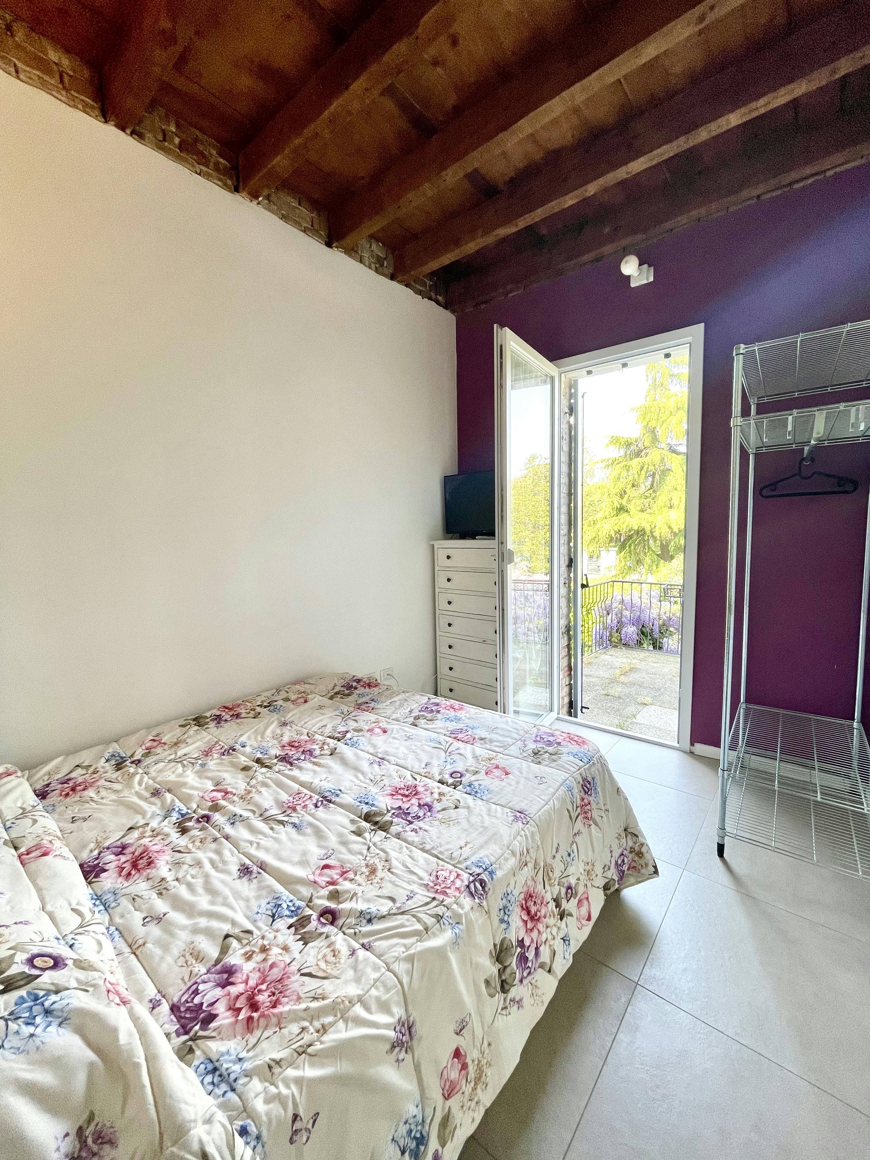Casa delle Stelle is a three-story Residence with 6 private rooms, each with a private bathroom; there is a very large shared kitchen, dining table and a pleasant internal garden with a cellar where there is a washing machine. This room is on the ground floor and is equipped with a double bed, work desk, smart TV, wardrobe and chest of drawers. Its private bathroom is inside the room. The cost of the room remains unchanged if you decide to use the room in 1 or 2 people. Cleaning of the room and common areas is included. Administrative costs, which are a one-time charge, include drafting and registering the contract and cleaning during the stay. They may vary depending on the length of your stay. 1-2 months: €100 3-5 months: €150 6-12 months: €200 12-18 months: €250 Casa delle Stelle è una Residenza su tre piani con 6 camere private, ciascuna con bagno privato; è presente un'ampia cucina in comune, un tavolo da pranzo e un grazioso giardino interno con cantina dove si trova la lavatrice. Questa camera si trova al piano terra ed è dotata di letto matrimoniale, scrivania, smart TV, armadio e cassettiera. Il bagno privato è interno alla camera. Il costo della camera rimane invariato se si decide di utilizzarla in 1 o 2 persone. La pulizia della camera e delle aree comuni è inclusa. I costi amministrativi, che sono una tantum, includono la redazione e la registrazione del contratto e le pulizie durante il soggiorno. Possono variare a seconda della durata del soggiorno. 1-2 mesi: €100 3-5 mesi: €150 6-12 mesi: €200 12-18 mesi: €250...