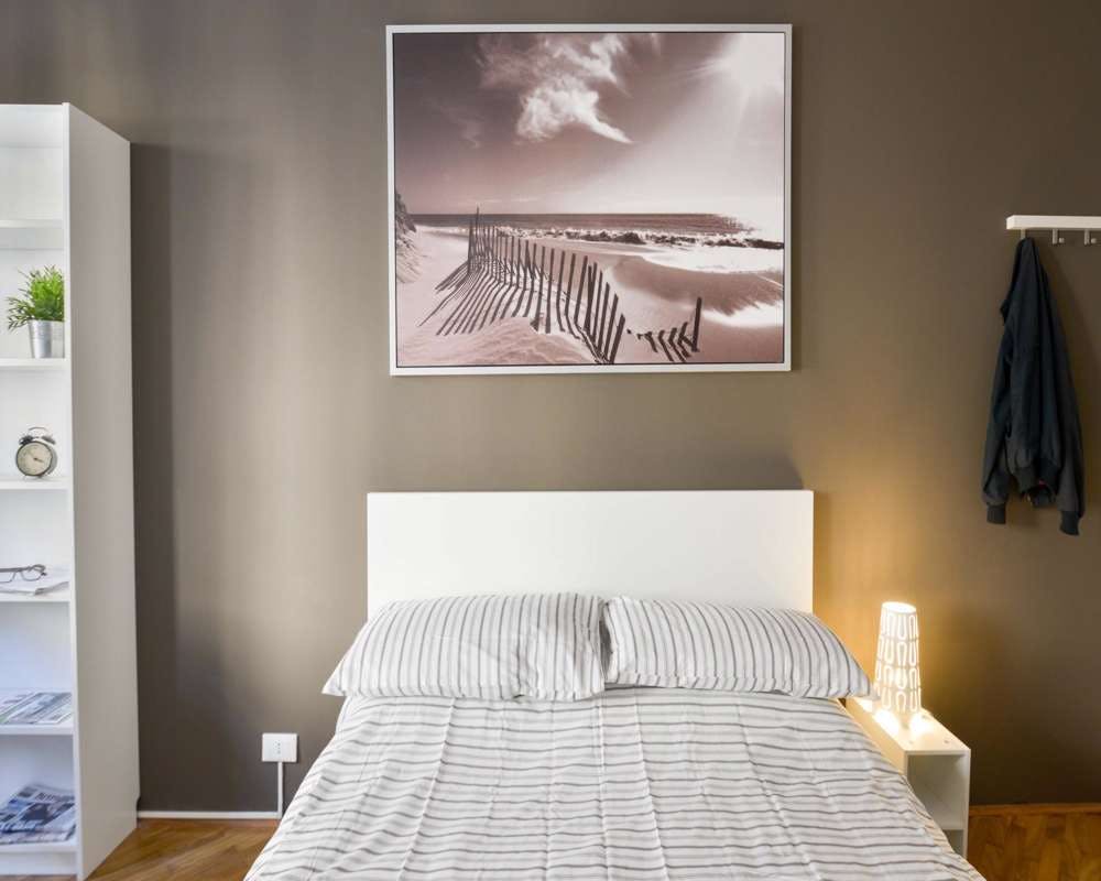 Single room in a shared apartment, composed by 4 bedrooms and 1 bathroom. Of about 19 sqm with a one and a half bed and a work station. With wifi, bike parking, dishwasher, washing machine. Energy class: G, IPE 163.59 Kwh/Sqm year. Current tenants: 1: 22, Female, Student 3: 23, Male, Student 4: 27, Male, Student Please be aware that HousingAnywhere is an online booking platform. Therefore exchanging contact details and offering viewings is not possible. If you would like to reserve this accommodation, send me a booking request or a message and please mention your age and occupation. I look forward to talking to you! CONTRACT Please, note that to all our listings we apply fortnightly contracts. This means that If you check-in during the first half of the month, you will be charged for the full month. If you check-in during the second half of the month, you will only be charged for the second half. The second half of the month starts on the 16th. If you check-out during the first half of the month, you will only pay until the 15th of that month. If you check-out during the second half of the month, you will be charged the full month....