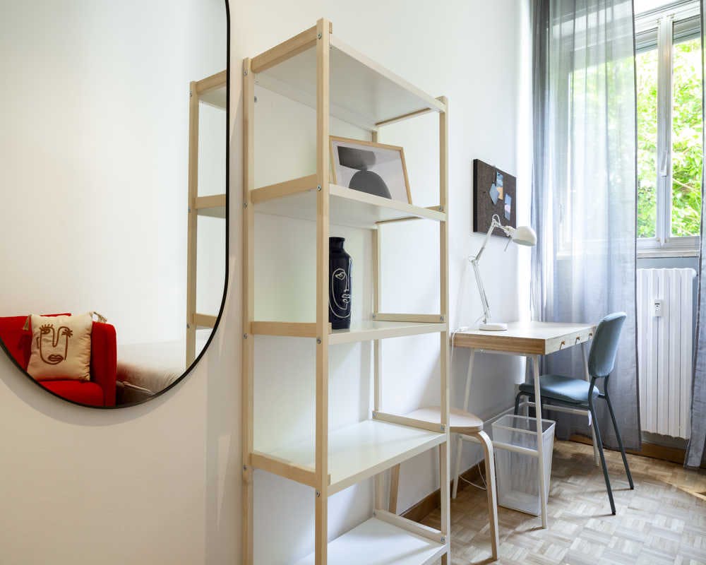 Single room in a shared apartment, composed by 5 bedrooms and 2 bathrooms. Of about 16 sqm with a one and a half bed and a work station. With wifi, concierge services, dishwasher, washing machine. Energy class: E, IPE 178.92 Kwh/Sqm year. Current tenants: 1: 25, Male, Student 2: 21, Female, Student 3: 25, Female, Student 5: 24, Male, Student Please be aware that HousingAnywhere is an online booking platform. Therefore exchanging contact details and offering viewings is not possible. If you would like to reserve this accommodation, send me a booking request or a message and please mention your age and occupation. I look forward to talking to you! CONTRACT Please, note that to all our listings we apply fortnightly contracts. This means that If you check-in during the first half of the month, you will be charged for the full month. If you check-in during the second half of the month, you will only be charged for the second half. The second half of the month starts on the 16th. If you check-out during the first half of the month, you will only pay until the 15th of that month. If you check-out during the second half of the month, you will be charged the full month....