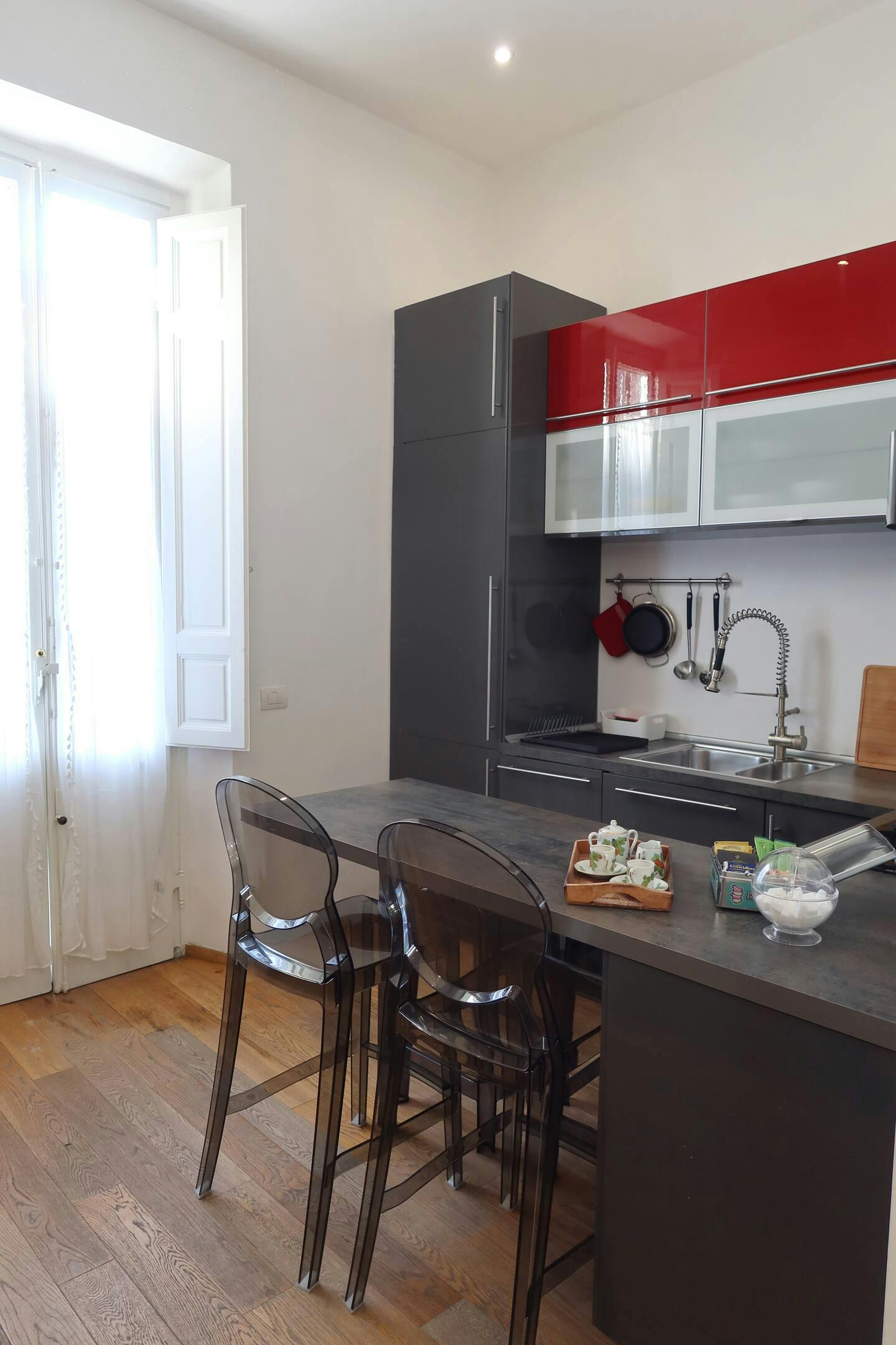 Delizioso appartamento in piccola palazzina degli anni ’20, nuovo, accessoriato e accogliente. Silenzioso e molto luminoso, è composto da cucina, camera matrimoniale, ampio bagno e spazioso ripostiglio. Dotato di balcone, con affacci su giardini interni. AC e WiFi. Cucina attrezzata: doppio forno (elettrico e microonde), tostapane, bollitore, lavastoviglie. Camera da letto matrimoniale con TV. Bagno ampio con cabina doccia. Ripostiglio attrezzato con lavatrice e lavandino di servizio...