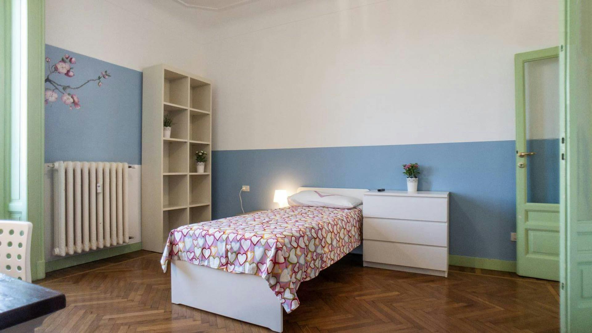 The apartment in Via Degli Scipioni 6 is a multi-room apartment shared by university students, interns or young workers. On the 6th floor there are the kitchen with the living room, 4 private bedrooms and 1 bathroom. On the upper floor there is a shared room with two small terraces and 1 private bathroom. The apartment is approximately 180 square meters and is located on the 6th floor of a residential building. The apartment in Via Degli Scipioni 6 has a strategic position to reach the city center of Milan. Close to the apartment there are the bus stations of the lines 5, 19, 33 56. In a few minutes by walking it is possible to reach the metro station Piola of the M2 Green line and the Lima station of the M1 Red line. This solution is therefore ideal for university students of the Politecnico di Milano and Università degli Studi of Milan. The area is served by all services: supermarkets, shops, bars, restaurants and take-aways. In an apartment located in via Degli Scipioni 6, this private room is reserved for university students, interns or young workers. Fully furnished, it is equipped with single bed, bedside table with lamp, wardrobe, bookcase, desk and chair. Kitchen, living room and bathrooms are shared with the other tenants of the apartment. Includes utilities: building expenses, heating, water, electricity, internet, garbage tax, periodical cleaning services of common areas; utilities adjustments excluded. RENTAL CONDITIONS: -BI-WEEKLY CONTRACT: If you move in during the 2nd half of the month, you will only pay half-a-month’s rent for that month. If you move out during the 1st half of the month, you will only pay half-a-month’s rent for that month. I always rent from the first day the room is available. - ALL - INCLUSIVE Monthly rent: water, gas, electricity, wi-fi, condominium fee all included! - DEPOSIT that it will be given back to you at the end of your stay. - CONTRACT REGISTRATION (one time fee): depending on the room you are interested in. Please check the field OTHER to see this fee. - ONE TIME ADMIN FEE: We are a professional property management company and for this reason we also include initial and final cleaning of the room; cleaning of common area of the flat every two weeks; 2 bed-linen; contract activation and termination: professional assistance service and property maintenance during your stay: we will take care of everything! Do you want to finish your contract earlier than agreed? Don’t worry, please inform us and if you find a substitute (of course we can also help you!), you can leave without any type of penalties. Please be aware that HousingAnywhere is an online booking platform. Therefore exchanging contact details and offering viewings is not possible. If you would like to reserve this accommodation, send me a booking request or a message and please mention your age and occupation....