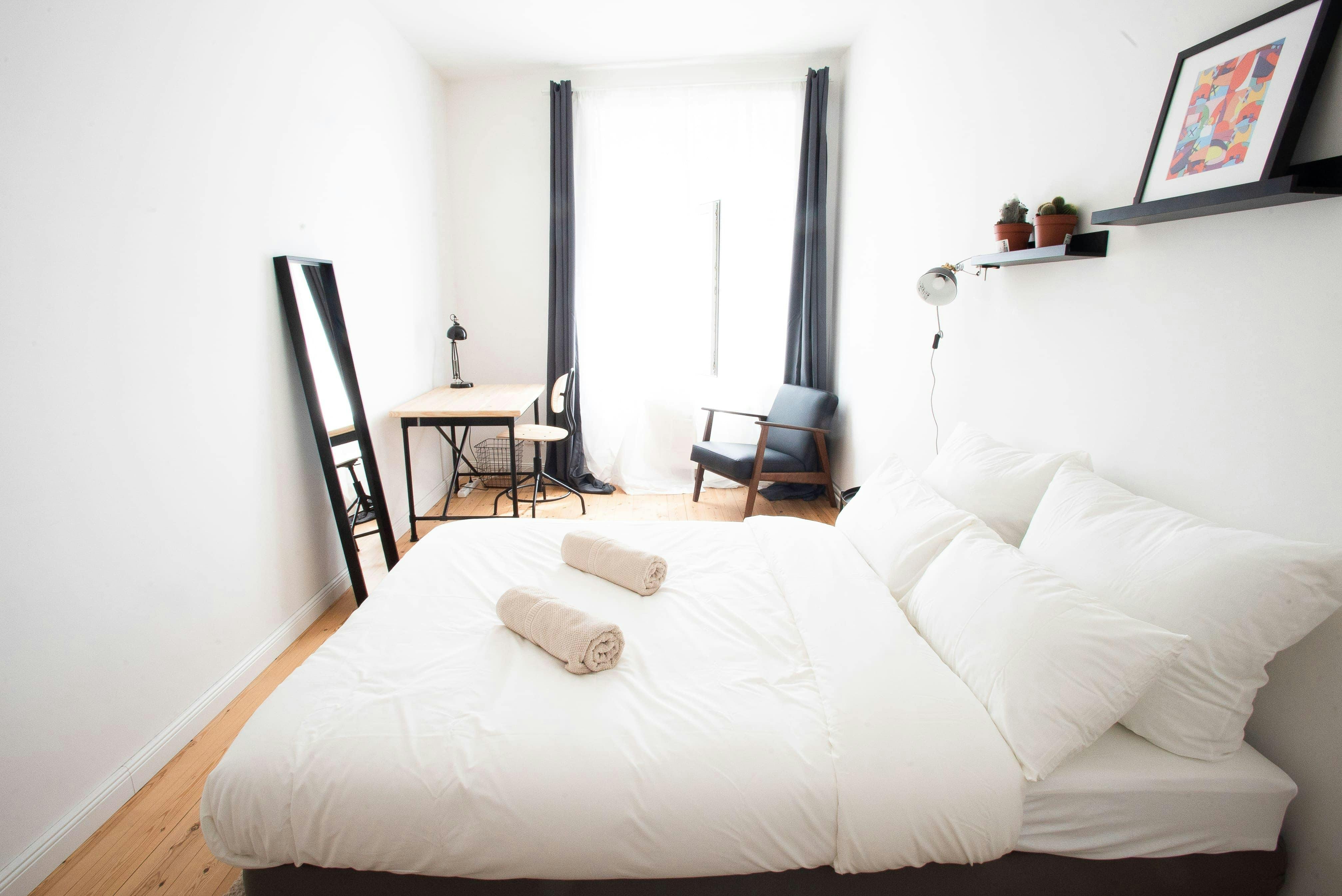 ROOM Cozy room in Neukölln in a newly renovated apartment. The room has all that you need to live, work and study here. From appliances to linen and towels, internet and more. APARTMENT The apartment is designed in a modern style with spacious rooms and a great kitchen. All costs are included in the rent, including bills, internet, bi-weekly cleaning and more! PROPERTY Only 2 minutes walk from the S-/U-Bahn station Neukölln (S41, S42, U7) making it easy to get to any other vibrant area in Berlin within 30 minutes....