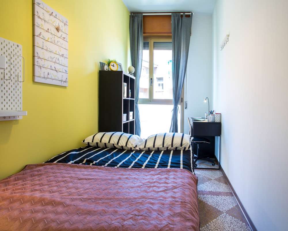 Single room in a shared apartment, composed by 6 bedrooms and 2 bathrooms. Of about 12 sqm with a one and a half bed and a work station. With wifi, dishwasher, washing machine. Energy class: D, IPE 76.74 Kwh/Sqm year. Current tenants: 2: 27, Male, Student 3: 20, Female, Student 4: 21, Male, Student 5: 23, Female, Student 6: 26, Female, Student Please be aware that HousingAnywhere is an online booking platform. Therefore exchanging contact details and offering viewings is not possible. If you would like to reserve this accommodation, send me a booking request or a message and please mention your age and occupation. I look forward to talking to you! CONTRACT Please, note that to all our listings we apply fortnightly contracts. This means that If you check-in during the first half of the month, you will be charged for the full month. If you check-in during the second half of the month, you will only be charged for the second half. The second half of the month starts on the 16th. If you check-out during the first half of the month, you will only pay until the 15th of that month. If you check-out during the second half of the month, you will be charged the full month....