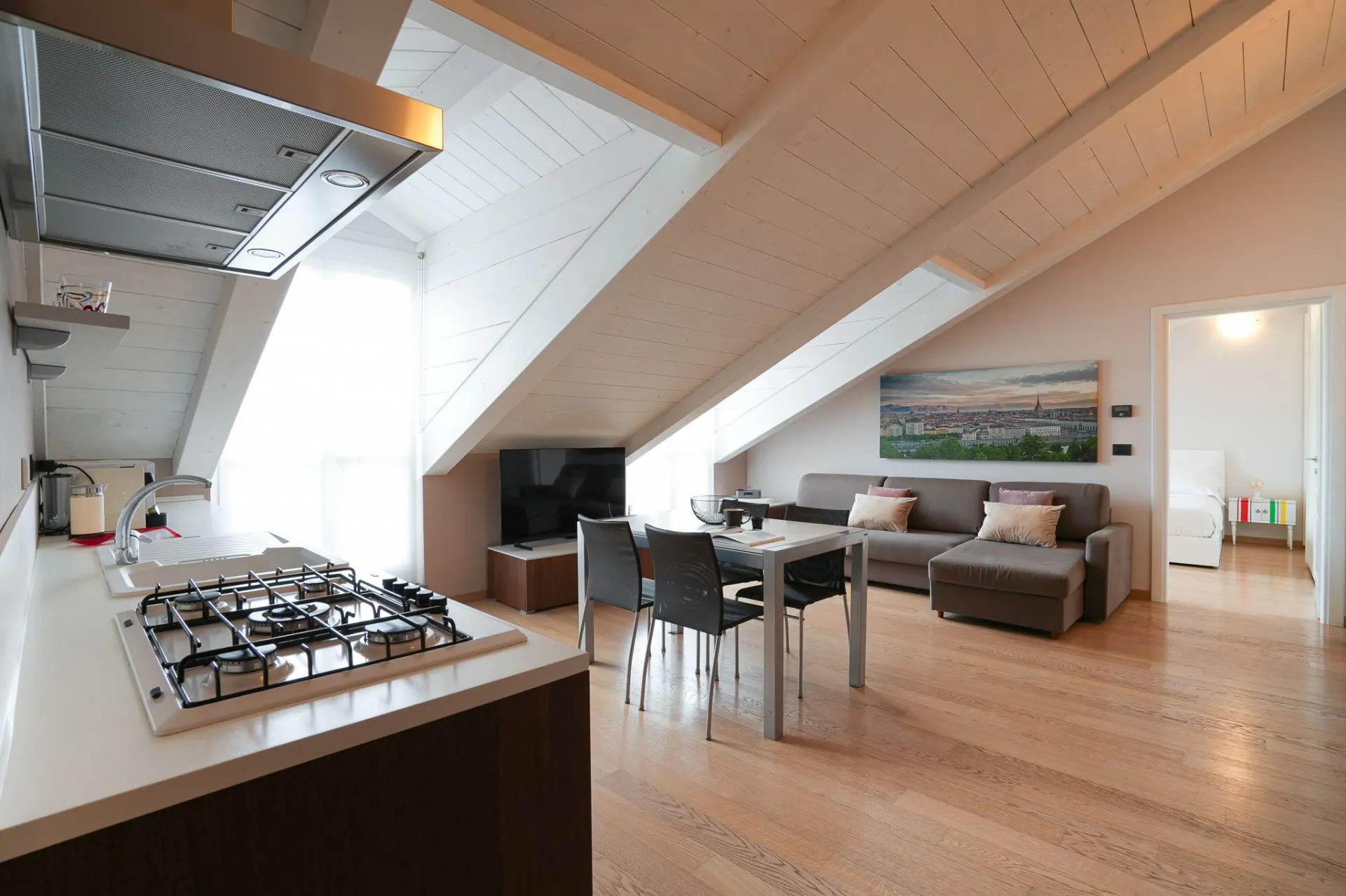 Welcome to the elegant attic of Maison Métropole in the Crocetta district of Turin! Fall in love with this newly renovated one-bedroom apartment, located on the top floor. The apartment is cozy and functional, featuring three small balconies that offer incredible views of the Turin skyline. The Space The bedroom includes a double bed, a desk ideal for working or studying, a TV, and spacious wardrobes. The living area is a modern open-plan space with a fully equipped kitchen, including appliances, cookware, utensils, and a dining table with chairs. The sofa bed comfortably accommodates two additional guests, while the smart TV and air conditioning ensure maximum comfort. The bathroom has a contemporary style, with a toilet, bidet, and a large shower. Towels and a complimentary set of shampoo and shower gel are provided. The Neighborhood Crocetta is one of Turin’s most elegant and quiet districts, conveniently located for reaching both the city center and main attractions: 📍 Politecnico di Torino – just a 10-minute walk 📍 Porta Nuova Station – about 15 minutes by public transport or car 📍 Egyptian Museum and Piazza San Carlo – in the heart of the historic center, about 15–20 minutes by public transport or car 📍 Mole Antonelliana – the city’s iconic landmark, about 20–25 minutes by public transport or car Nearby Parking Options 🅿️ Via Duca degli Abruzzi area – blue-line parking (paid) easily available during weekdays 🅿️ Autorimessa Crocetta (Corso Re Umberto, 55) – 5 minutes on foot or by car for maximum convenience 🅿️ Garage Duca (Via Duca degli Abruzzi, 106) – 5 minutes on foot or by car 🅿️ Autorimessa De Gasperis (Via De Gasperis, 13) – 5 minutes on foot or by car Costs💰 The monthly rent includes all utilities such as electricity, water, gas, and internet. We require a deposit to be paid at check-in, plus a one-off payment of €200 to cover contract registration costs (€ 2 for stamp duty)....