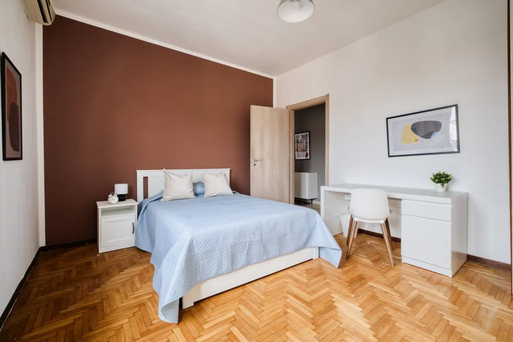 Spacious and bright three-room apartment on Via Maniago, just a few minutes from the Città Studi university area, Politecnico, and UNIMI. This flat is located in one of Milan’s most international neighborhoods, Lambrate, with easy access to Politecnico di Milano, the University of Milan, and the entire Città Studi university area. Recently renovated, the flat is designed to meet the needs of students and young professionals. Large windows and balconies fill the rooms and common areas with natural light. The apartment features a kitchen with balcony, two private bedrooms, and a bathroom with shower and washing machine. The recent renovation adds cozy details throughout, making it a comfortable and welcoming home. The flat is located in the heart of the Lambrate - Città Studi district, where you will find: - Politecnico di Milano: 15 minutes by walk; - UNIMI 20 minutes by walk; - BESTA and Istituto dei Tumori 20 minutes far; The area has everything you need for a comfortable stay: supermarkets, services and any kind of shops. Strategic location that will let you enjoy all the great activities that Milan offers. You will be able to explore the city by walk or using the several means of transportation in the area: - Lambrate FS Station 7 minutes by walk; - Lambrate Green Line Metro 7 minutes by walk; Trams and buses are available at Milano Lambrate station. Milan, the Italian capital of fashion, is the new trend destination in Europe due to its historical heritage, gastronomy and design. Elegant palaces, huge tree-lined avenues and avant-garde boutiques frame the scene. You will find countless restaurants and clubs that livens up the city all year round, as well as priceless historical monuments such as the Duomo, Castello Sforzesco, Quadrilatero della Moda, Galleria Vittorio Emanuele, Palazzo Reale and Cenacolo Vinciano. - Don't smoke - Pets are not allowed - Parties are forbidden - Take out the trash daily - Short-term visits are allowed Elegant private room located on Via Maniago The room has a double bed, desk, shoe rack, bedside table, and a large wardrobe. The parquet floor lends that welcoming, warm feeling we all love after a busy day of studying or working. It's the ideal solution for university students or young professionals. ALL BILLS ARE INCLUDED up to 50 euro of expenses per month (if you will do a normal amount of usage, you would not have to pay for it!). After the payment of the first month rent on HousingAnywhere, to finalize the reservation, the tenant has to pay the deposit and the admin fee. The admin fee covers: -weekly cleaning service of the common areas for the entire duration of the contract; - contract registration fees (registration tax, stamps and registration fee); -maintenance. Contracts can’t end on 30 of April - 31 of May - 30 of June. Cancelling contract in advance is possible with three months notice period only after three months contract. If you cancel the contract before the natural ending you have to pay 200€ penalty...