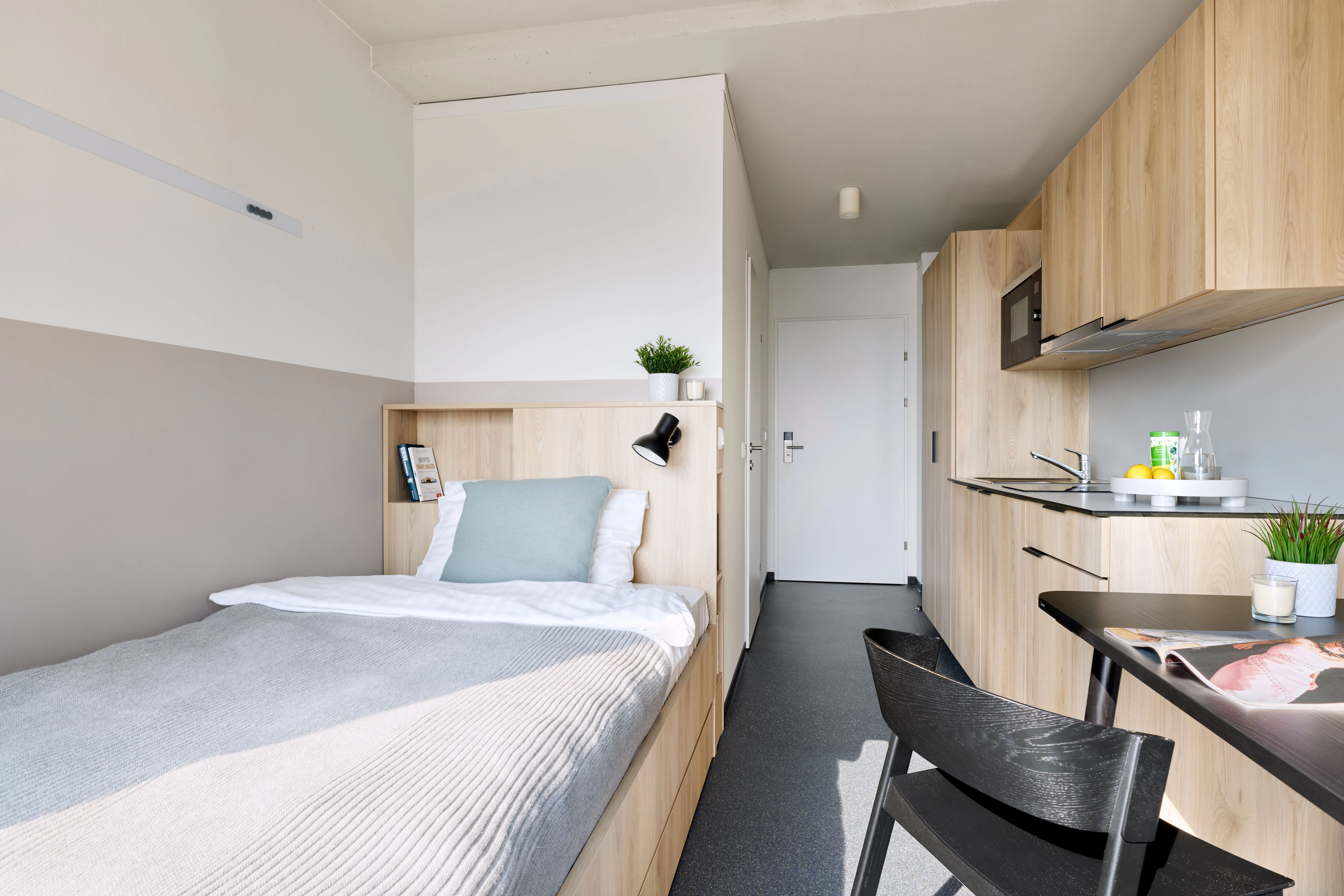 Modern Studio Living – All-Inclusive & Fully Equipped Discover your new home in our brand-new studios, perfectly designed for students and young professionals. Located from floors 1 to 32, our apartments offer stunning views and a seamless move-in experience. To ensure the best experience for our community, we maintain consistent, flat pricing across all floors—grab the best view available today! The "Plug & Play" Premium Experience Your stay starts in our Premium Studios, designed for a hassle-free arrival. Just bring your suitcase! Fully Furnished: Includes a comfortable bed, wardrobe, table, and seating. Fully Equipped: Unlike standard rentals, we provide all bedding and essential kitchenware. All-In Rent: Your price includes all utilities, high-speed WiFi, and furniture rental. Apartment Features: Floor-to-ceiling windows with a built-in seat bench. Private modern kitchenette (fridge, 2-ring hob, sink). Modern bathroom with shower and mirror cabinet. Total comfort with full lighting and blinds. Note: Single occupancy only. Features: 33rd Floor Sky Lounge: Rooftop terrace with panoramic views. Fitness & Zen: On-site gym and dedicated yoga room. Community: Game room with pool table, coffee shop in the lobby, and laundry room. Study & Work: Quiet study spaces and ample bike storage. 🌟 SPECIAL LOYALTY OFFER 🌟 Love the lifestyle? Stay for the year and save! If you enjoy your stay in our Premium Room and wish to extend your journey with us, we offer an exclusive transition to our Standard Rooms for a 9-month extension: One Month Free: We will gift you one full month of rent for free on your 9-month extension. The "Standard" Transition: Standard rooms feature the same high-end furniture and building access. While they do not include bedding or kitchen items, they allow you to personalize your long-term home with your own touch. Simple Pricing: We keep our rates straightforward and competitive to help you focus on your studies, not your bills. Booking Information: The deposit is required prior to move-in. As Housing Anywhere is an online platform, viewings are not possible. To reserve your studio, please send a booking request or message including your age and occupation. We look forward to meeting you...